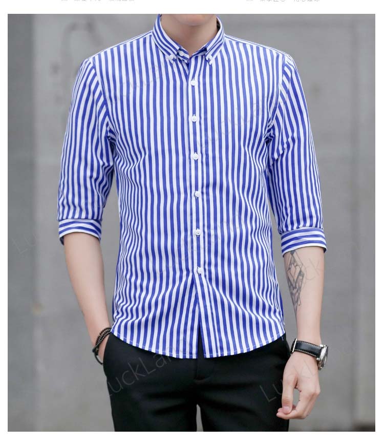 シャツ メンズ 5分袖 ストライプシャツ ワイシャツ メンズシャツ ストライプ ビジネスシャツ ホリゾンタル 大きいサイズ 薄手 通気性 コットン ファッション インナー 綿