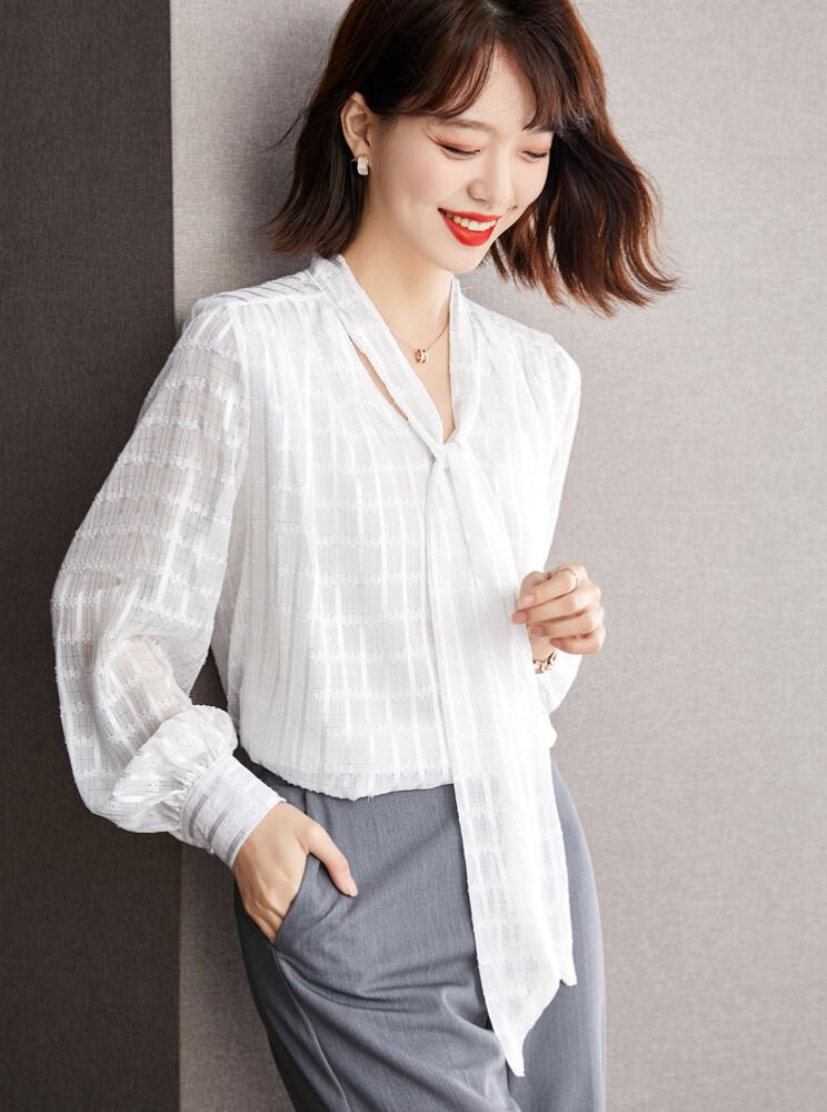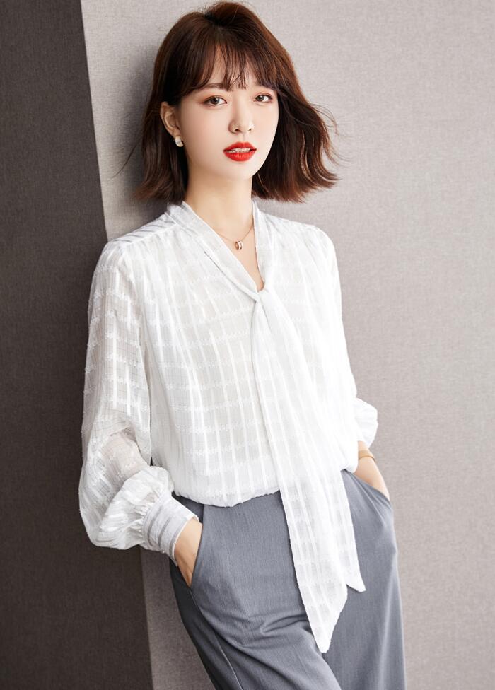 シャツブラウス ボウタイシフォンチェッ