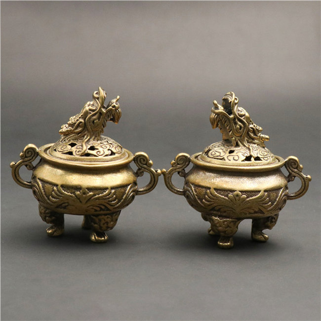 置物 風水 龍 お守り 置き 方 開運 祈願 グッズ 風水グッズ香炉 銅製 雑貨 香皿 仏具 聞香 香道銅製の風水香炉 小さい5*5.1CM