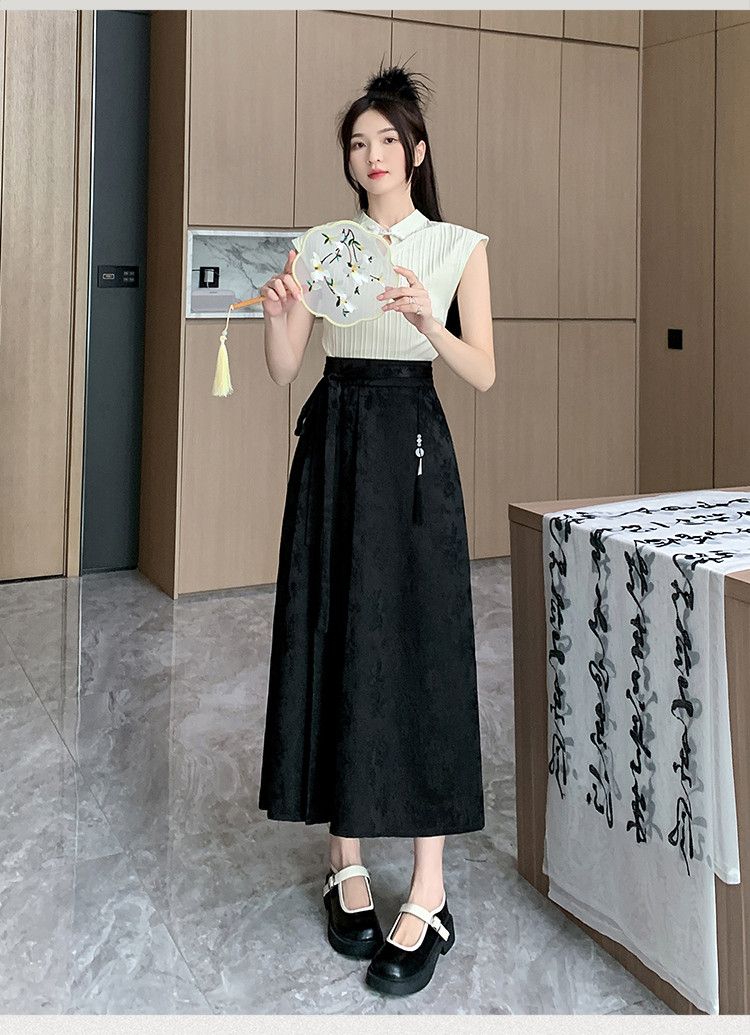 ロングスカート チャイナ風 夏 プリーツ フレアスカート マキシ丈 ジャカード織 茶会 ギフトレディースファッション ボトムス スカート