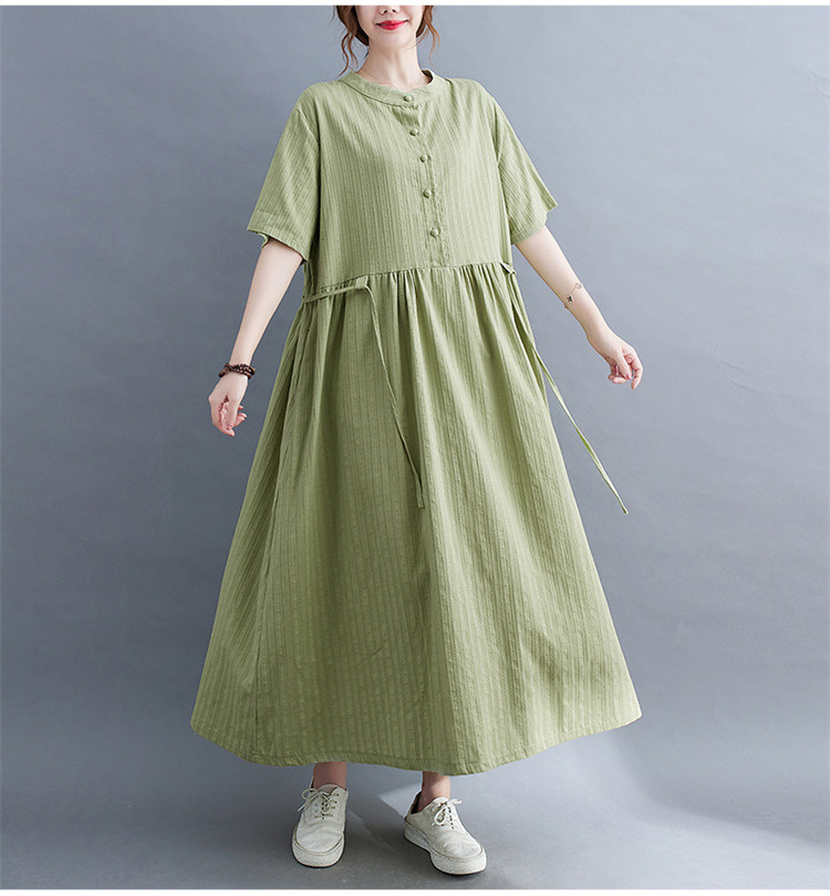 商品名 ワンピース シャツワンピース レディース 半袖 マキシ丈 春夏 綿麻 ロング丈 スタンドカラー ストライプ デザイン ゆったり マキシワンピ Aラインワンピース 大きいサイズ きれいめ 40代 30代 20代 母の日 プレゼント 通勤 仕事 ウエスト紐 体型カバー カジュアル 夏用