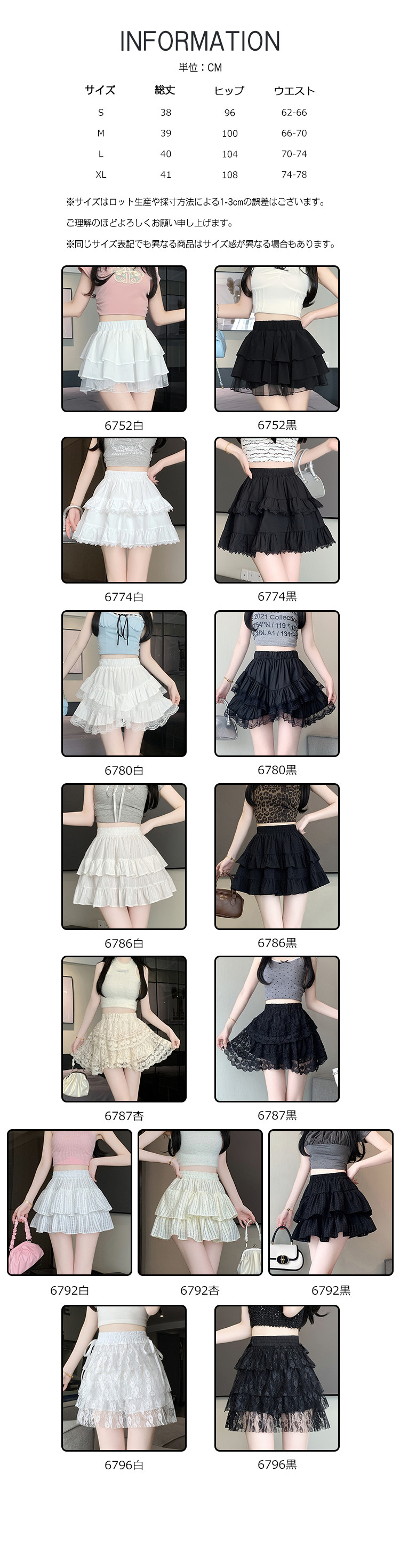 ※お取り扱い前に、商品付属タグの記載もご確認下さい。商品情報商品名 スカート レディース ティアードスカート フレア ハイウエスト ウエストゴム 裏地あり かわいい きれいめ素材 ポリエステルカラー 6752白|6752黒|6774白|6774黒|6780白|6780黒|6786白|6786黒|6787杏|6787黒|6792白|6792杏|6792黒|6796白|6796黒サイズ S|M|L|XL生産国 中国包装について 環境保護の観点から、「簡易包装」を推進しております明細書について 当店ではエコロジーと個人情報流出防止のため、ご指示の無い限り明細書を発行しておりません。