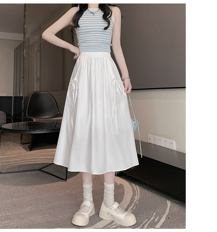 商品名 スカート レディース ボトムス ウエストゴム Aラインスカート フレアスカート リボン ボウタイ カジュアル
