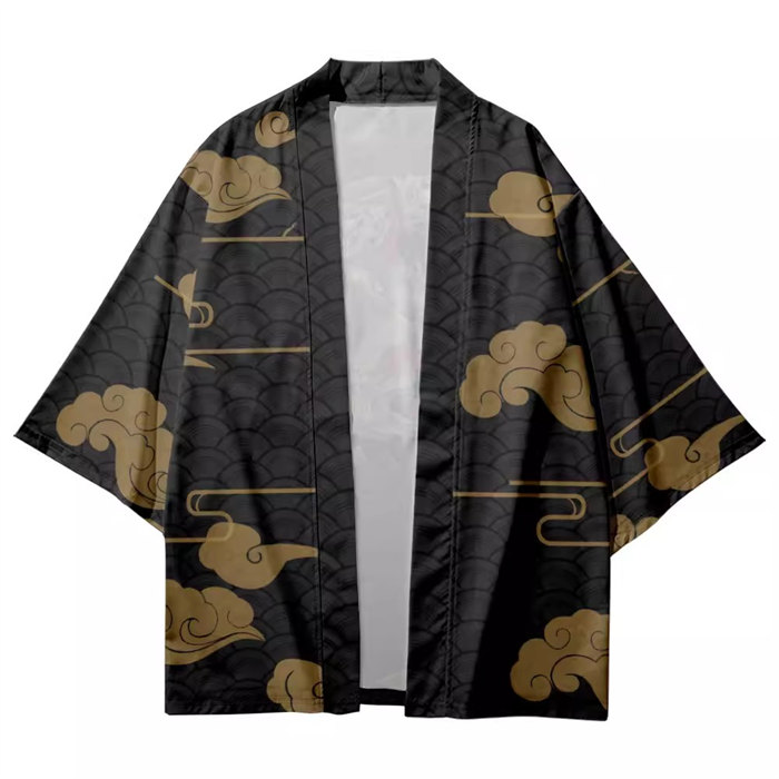 ブラック男女兼用 夏祭り 夏恋 寺 法被 羽織り 半纏 はんてん 法被 ハッピ 長半纏 半天 袢天 半被 お祭り衣装 雅 和柄 羽織 和装 ユニセックス 浴衣 着物 はっぴスタイル かっこいい かわい