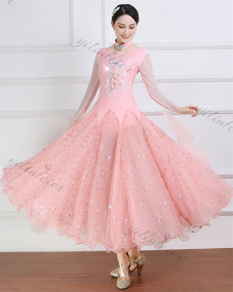 社交ダンス レディース ダンスドレス 衣装 ワルツ ワンピース イベント 大きい裾 モダン ドレス 社交ダンス衣装 広がる裾 スタンダード レッスン着 演出用 高級感 踊りドレス 大人気
