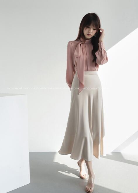 シアースリーブ ドッキングシャツ ボウタイシャツブラウス
