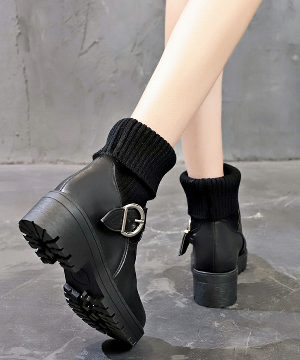 厚底ショートブーツ 2way美脚ワーク