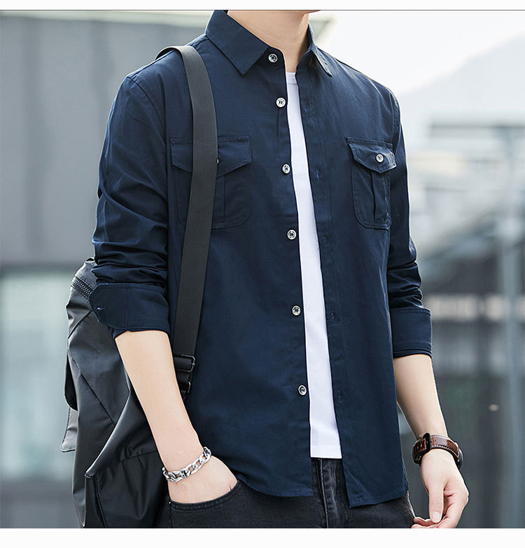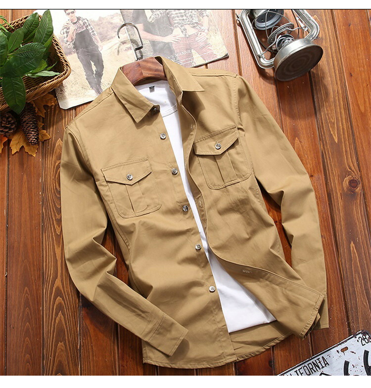ミリタリーシャツ カジュアルシャツ 綿 綿100% ワークシャツ メンズ 秋服 ミリタリー シャツ トップス メンズシャツ スリムシャツ シャツジャケット アメカジ 無地 長袖 シャツ 春 秋 服 3