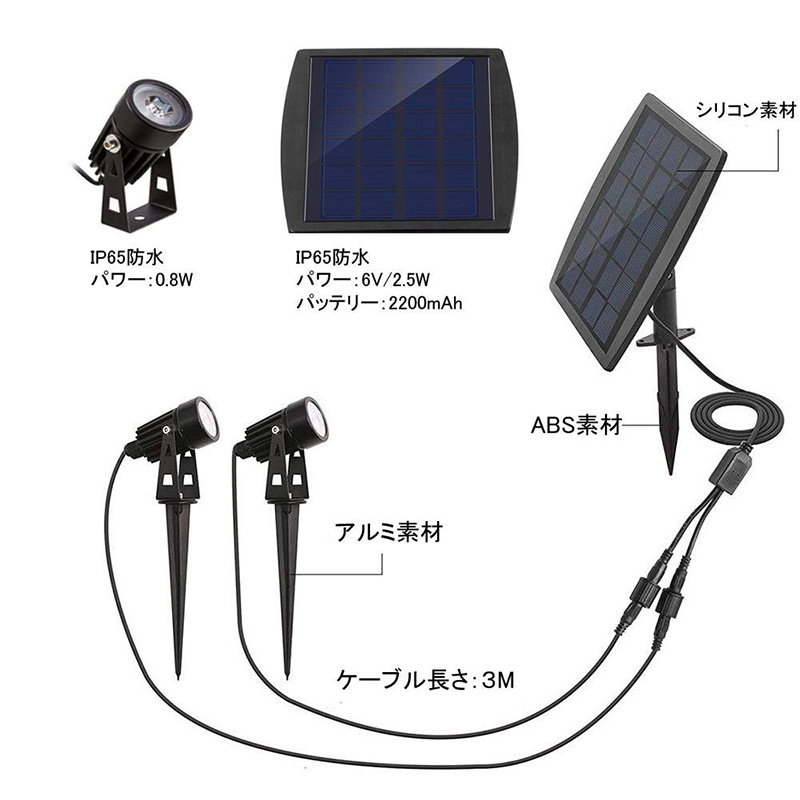 LED ソーラーライト 屋外 ガーデンライト アウトドア 防犯ライト スポットライト 太陽光パネル充電 分離式 防犯対策 IP65防水