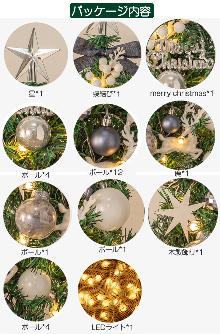※オーナメントの数が多少前後する場合がございます。また商品の形・色が画像と多少違う可能性もございます。