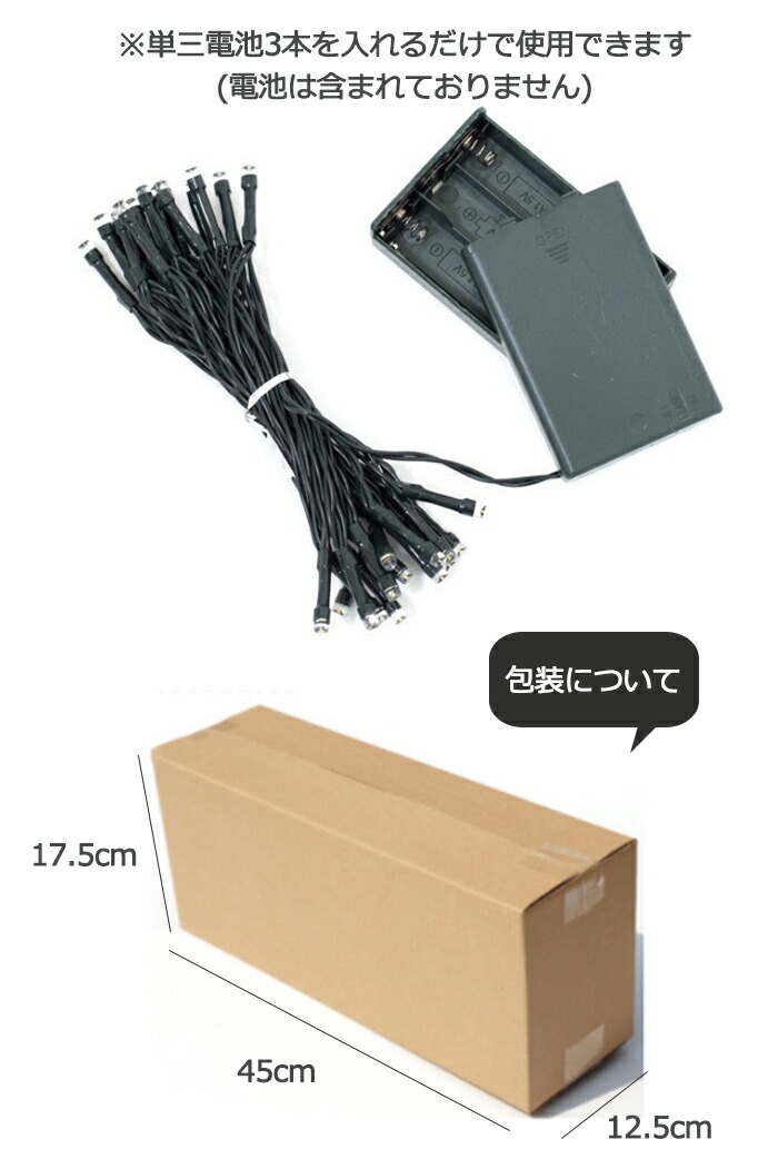 LEDストリングライトはツリーをキラキラと輝かせる。電池式のLED電球で、充電の必要がなく、3本の単三電池だけでキラキラと点灯できます。(ご注意:電池が付属していません。)