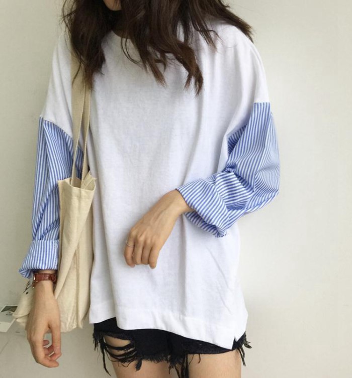 シアースリーブ ドッキングシャツ ボウタイシャツブラウス