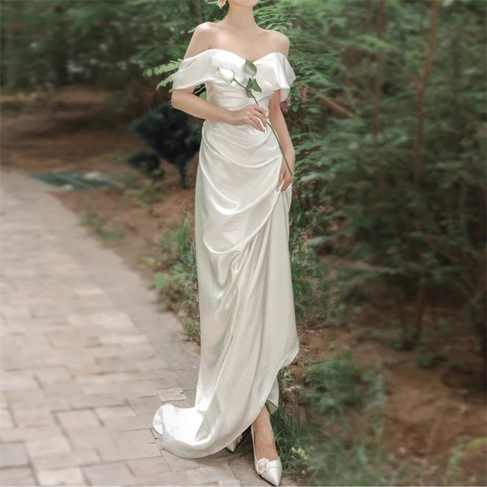 ホワイトウェディングドレスマーメイドオフショルダー ロングドレス ウェディングドレス パーティードレス二次会ドレスブライダル撮影 2レディースドレス