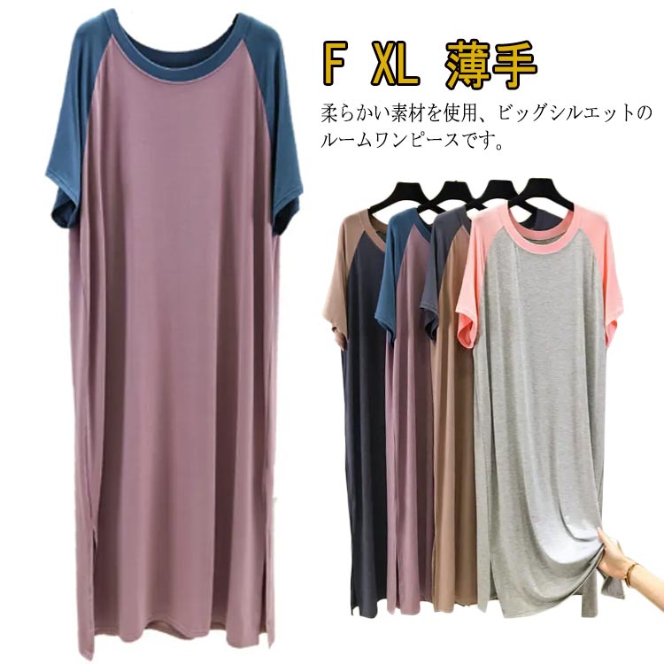 ルームワンピース 半袖 パジャマ レディース 夏 ワンピース 吸汗 通気 ゆったり 着心地抜群 無地 Tシャツワンピース