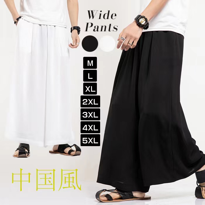 M~5XL 麻ワイドパンツ 薄手 春夏 ロング丈 ウエストゴム ナチュラルメンズファッション ズボン パンツ