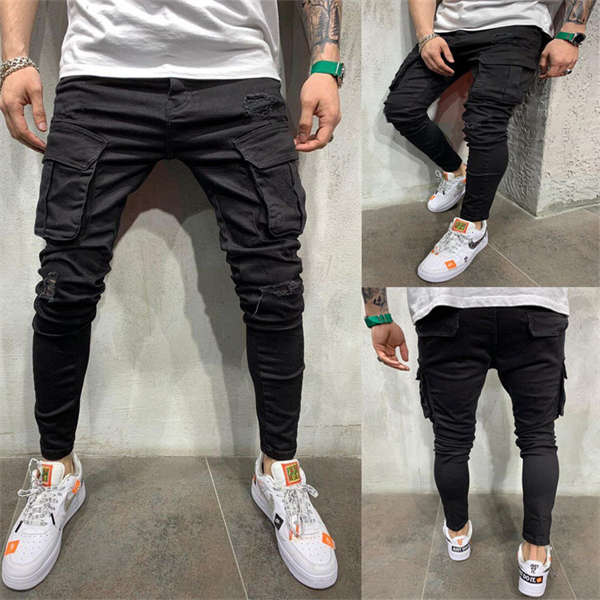 メンズ ジーンズ デニム カーゴ ウォッシュ スキニー パンツ テーパード 作業 ズボン 春 夏 秋