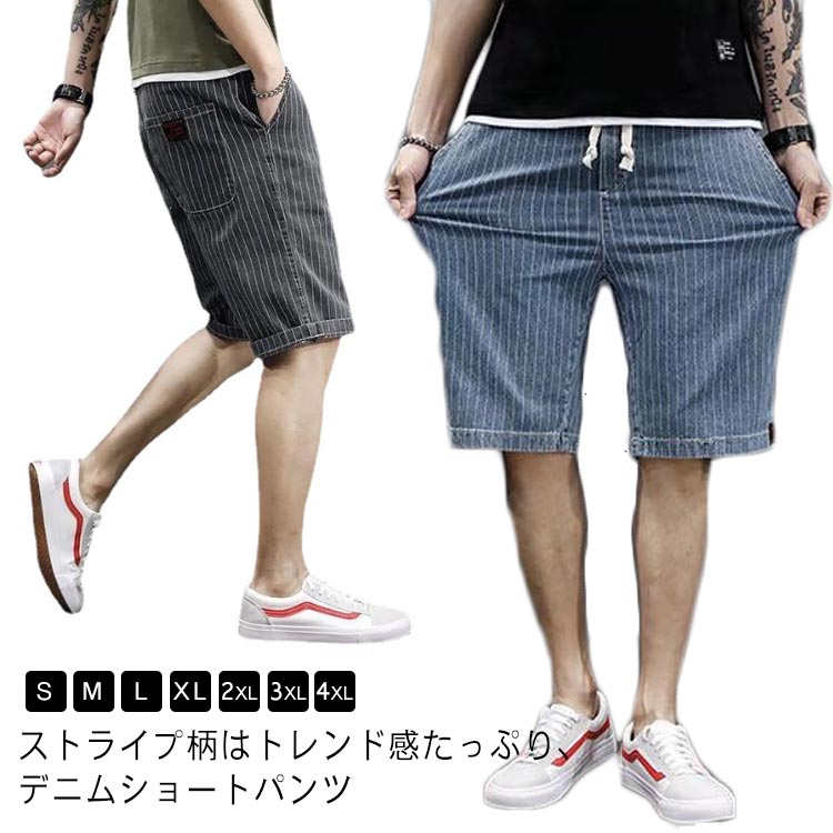 ハーフパンツ ジーンズ ショートパンツ デニムパンツ お洒落 ストライプ柄 ショートパンツ ジーンズ