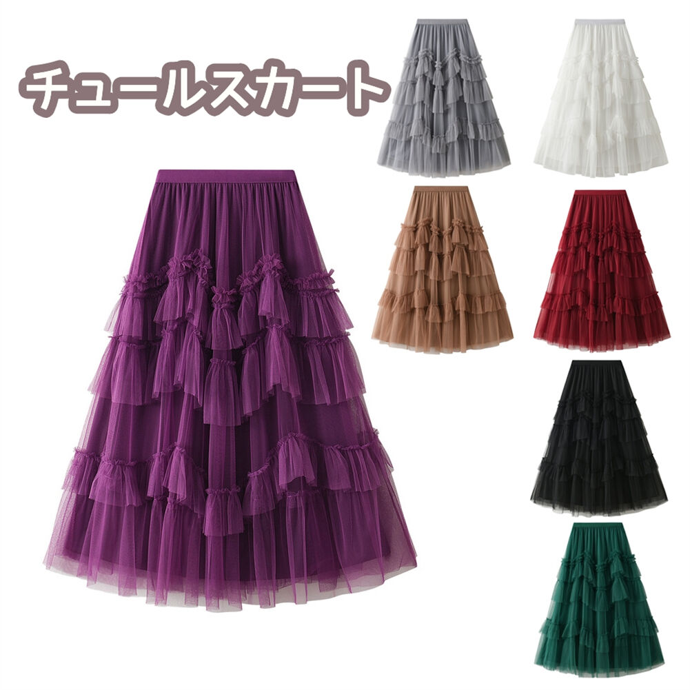 7色展開プリーツスカート ウエストゴム 魅力 お洒落 無地 裏地付き 着痩せ 体型カバー お出かけ社交ダンス スカート メッシュ 広がる裾 エレガント モダンダンス コーラス 大きい