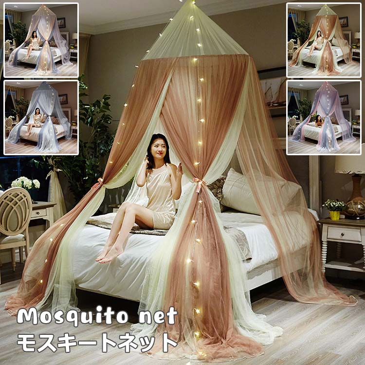 蚊帳 モスキートネット 丸天蓋 天蓋カーテン 混色 スリーピングカーテン ベット用品 ベット帳 ベット蚊帳 キャノピー 姫系インテリア 子供用 学生用 寝室用