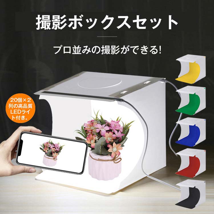 撮影ボックス 撮影キット 撮影ブース カメラ スマホ用写真撮影用 スマホ フリマ 出品 小物 小型 コンパクト 簡易スタジオ LEDライト付き 撮影 USB電源 背景付 ミニ撮影ボックス 折り畳み式