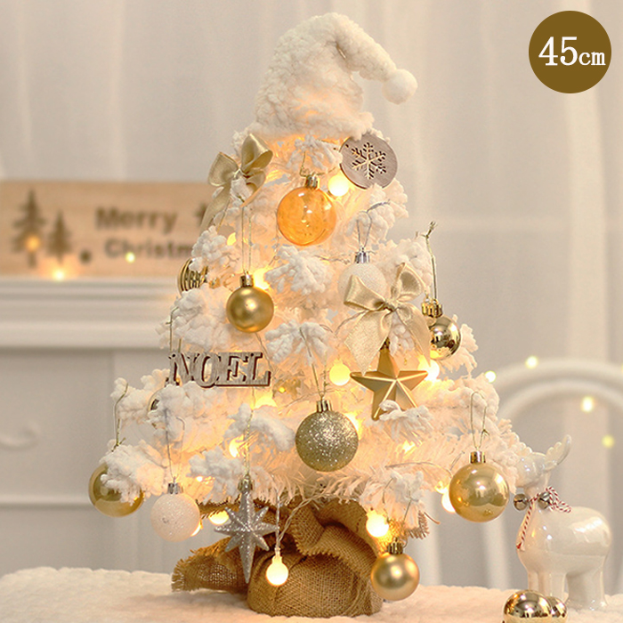 クリスマスツリー 卓上 45 ミニツリー クリスマス飾り ライト付き キラキラ 電池式 オーナメント おしゃれ 雰囲気満々