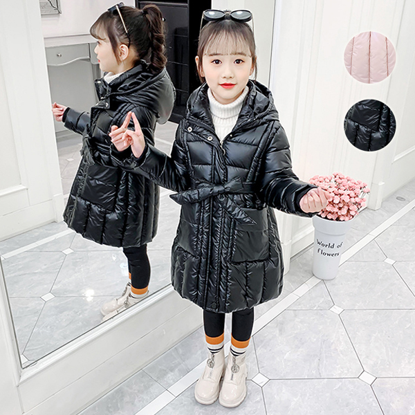 中綿コート ロング キッズ 綿入り ジャケット フード付き 女の子 ウエストベルト キッズコート 2色 aライン 着痩せ110 120 130 140 150 160cm