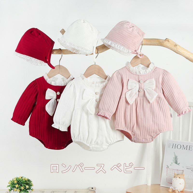 ベビーロンパース 幼児 新生児 赤ちゃん オールインワン スナップボタン 七五三 女の子 保育園 寝冷え防止 柔らかい 出産準備 出産祝い 帽子付き カバーオール ベビー服 春 秋 長袖 前開き 記念