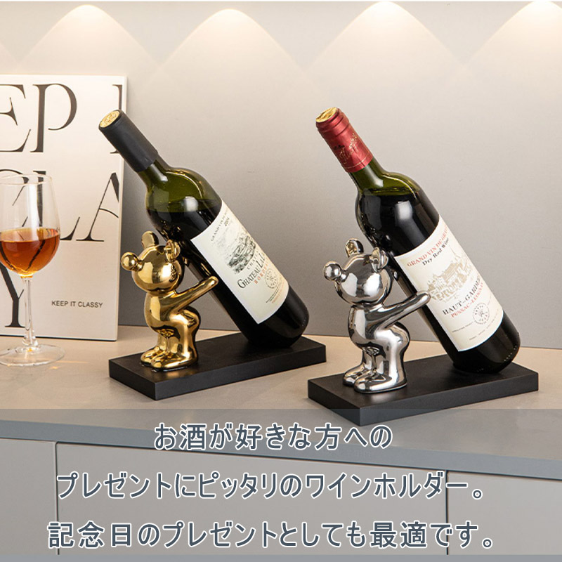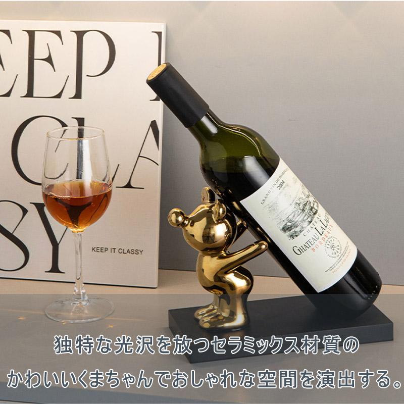 ワインホルダー ワイン ワインラック グラスホルダー スタンド ケース ワインスタンド トレイ ディスプレイ オブジェ インテリア グラス掛け 置物 吊り下げ 収納 雑貨 金属 木製 シャンパン ボトル 母の日 父の日 ギフト プレゼント 贈り物 誕生日プレゼント くま おしゃれ デザイン かわいい ゴージャス 高級 男性 父 便利グッズ おもしろグッズ 送料無料