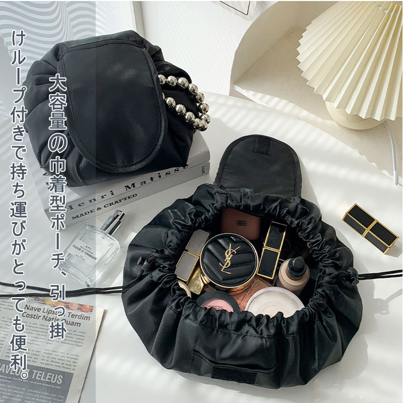 巾着 化粧ポーチ 無地 パール メイク