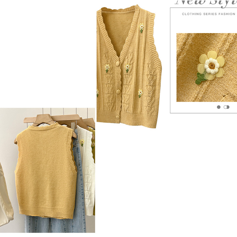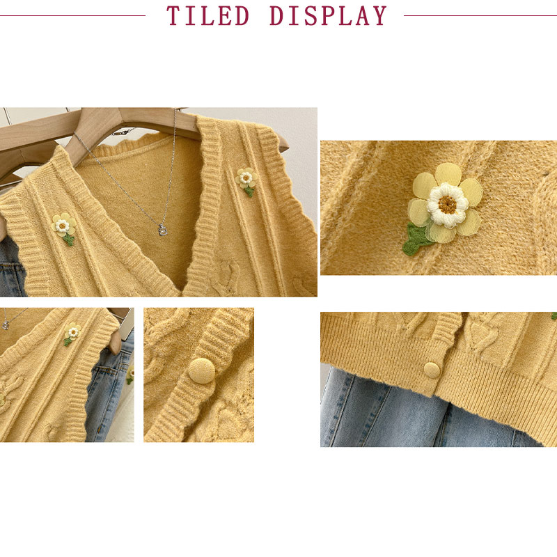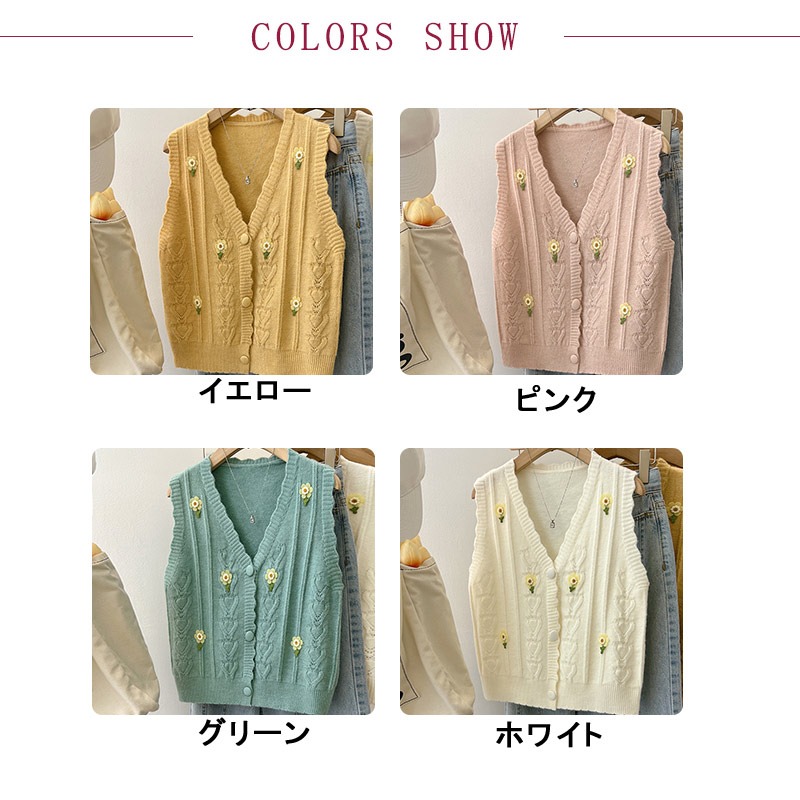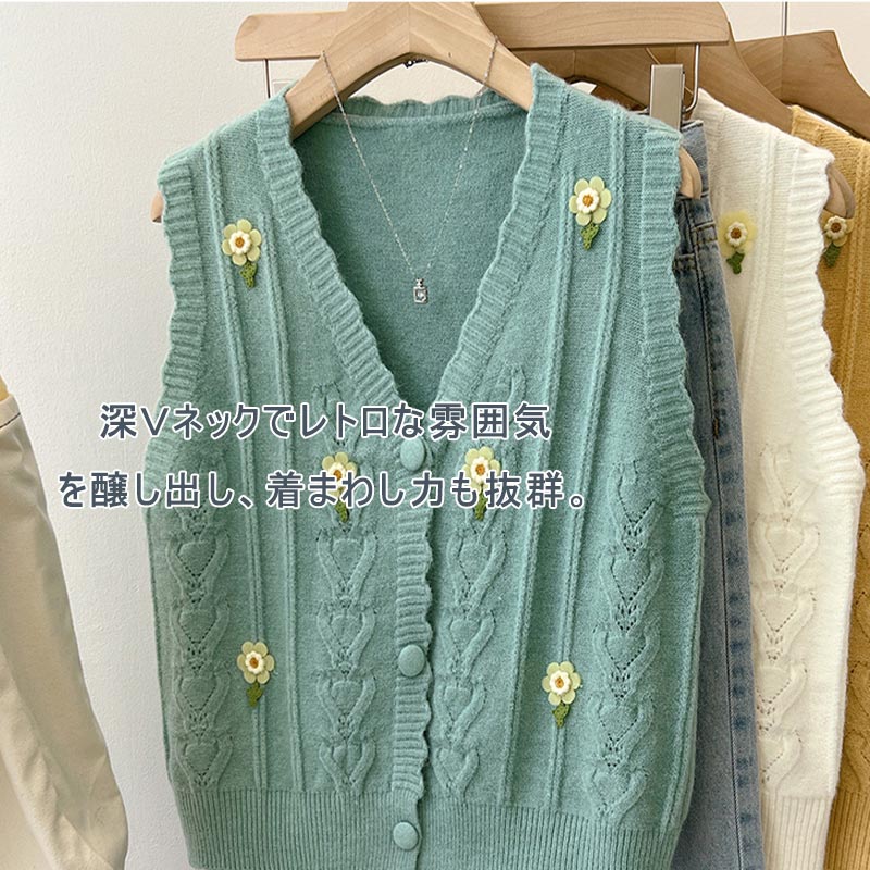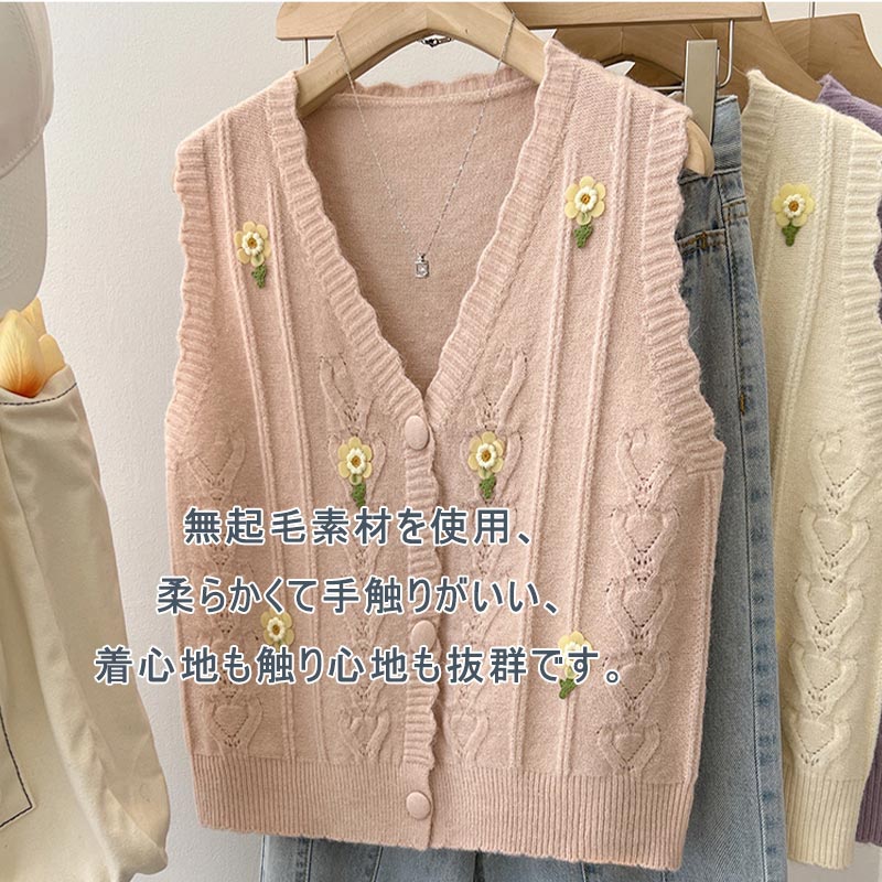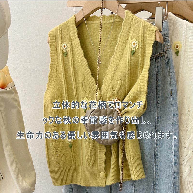 ニットベスト トップス レディース ベスト おしゃれ ショット丈 ノースリーブ ラッフルカラー 花柄 春 秋 普段使い おしゃれ 肌触りが良い 可愛い ゆったり お出かけ 若く見える 快適 着回し レ