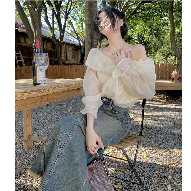 シフォンブラウス シアーブラウス ボリューム袖