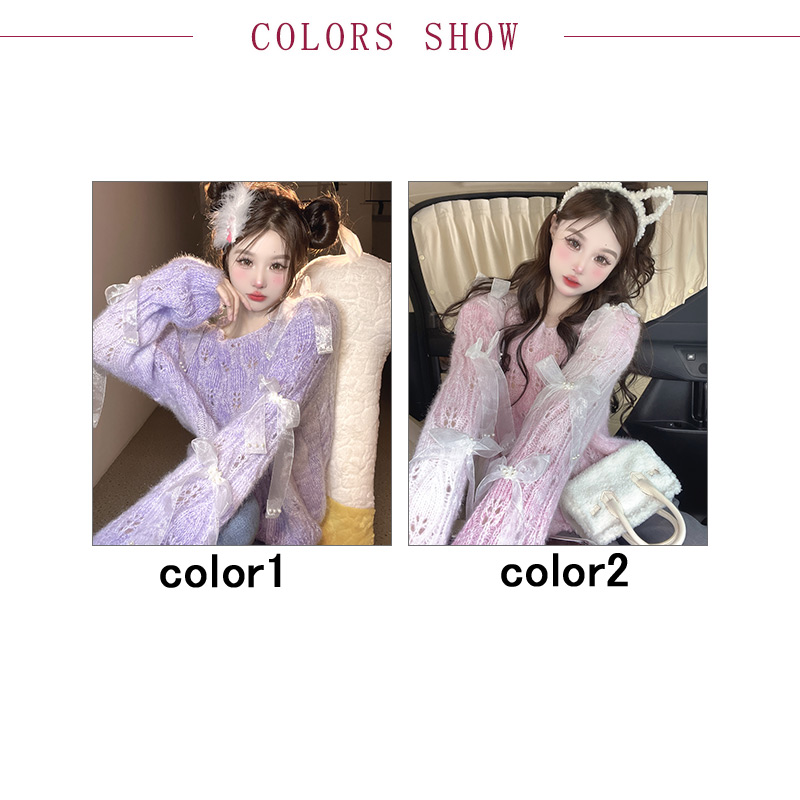 シアースリーブ ドッキングシャツ ボウタイシャツブラウス