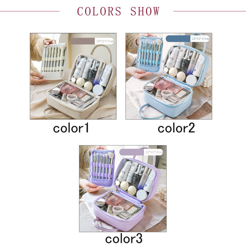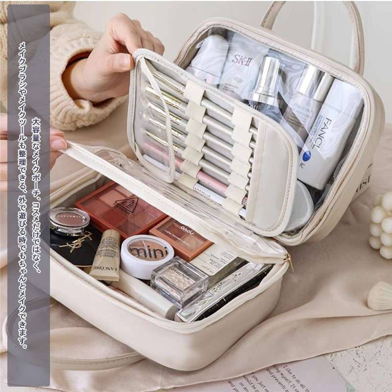 大容量なメイクポーチ、コスメだけではなく、メイクブラシやメイクツールも整理できる、外で遊びる時でもちゃんとメイクできます。