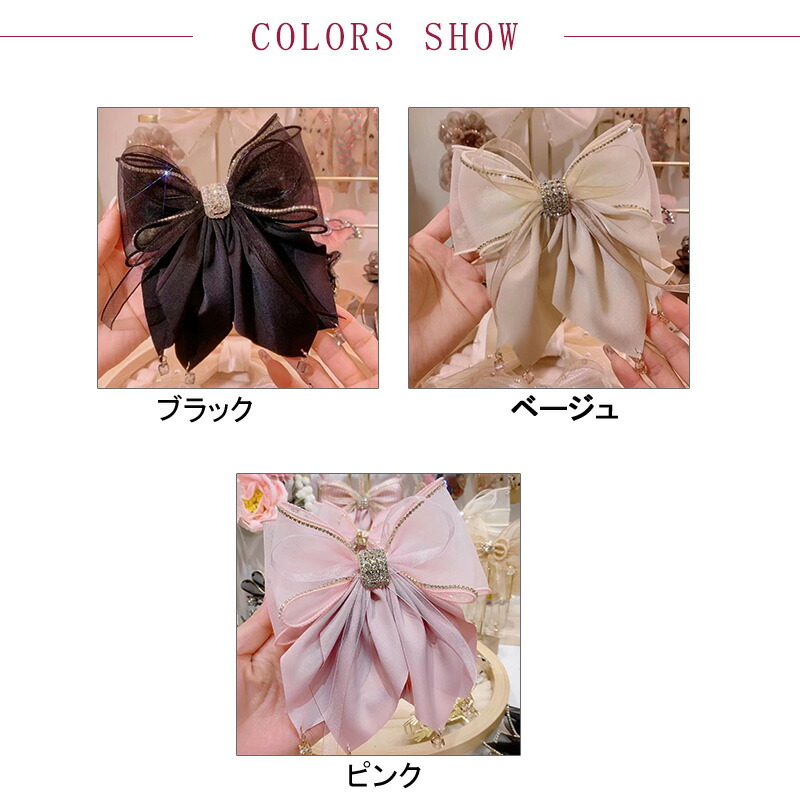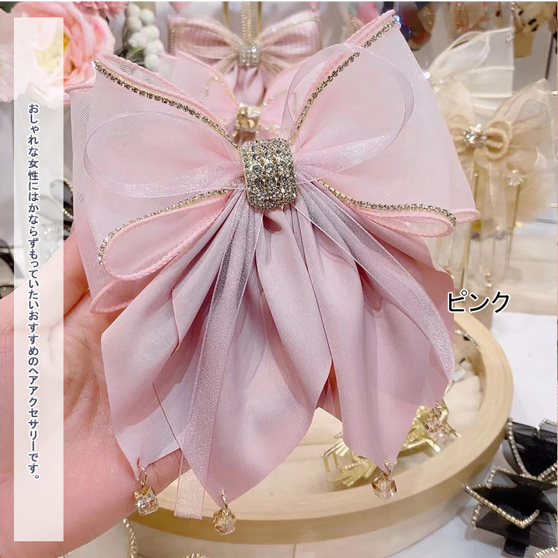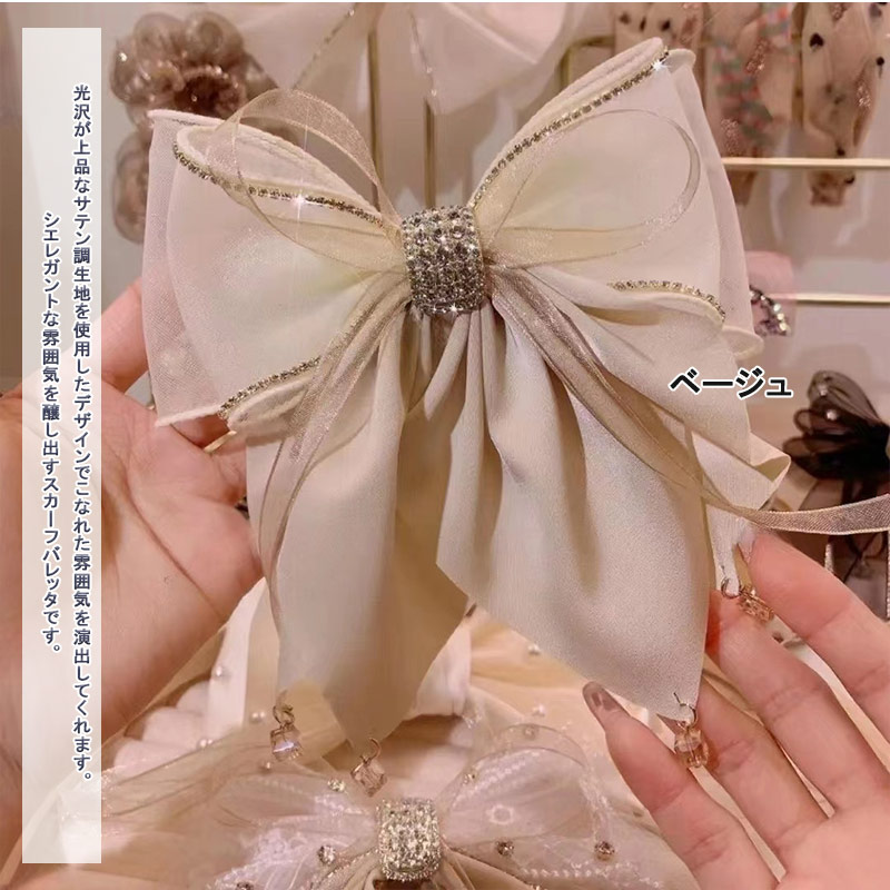 バレッタ リボン サテン ラインストーン キラキラ ヘアアクセ ヘアピン ボリューム ヘアアレンジ ヘアアクセサリー スカーフバレッタ 無地 まとめ髪 蝶結び 大人っぽい 女性 婦人用 キッズ 光沢