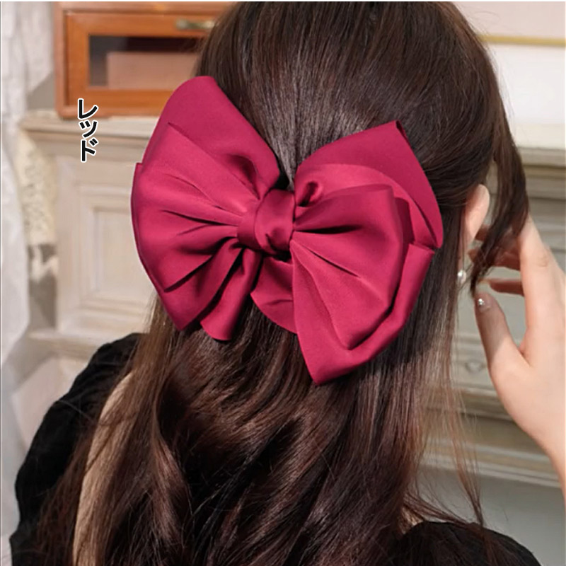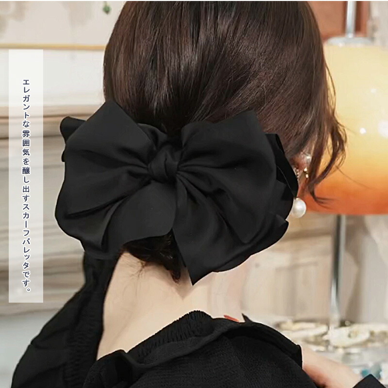 バレッタ サテン バンスクリップ ヘアアクセサリー リボン ヘアピン ヘアクリップ 大きめ 蝶結びヘアークリップ 髪飾り 髪留め レディース スカーフバレッタ 大人 可愛い おしゃ 結婚式 パーティー