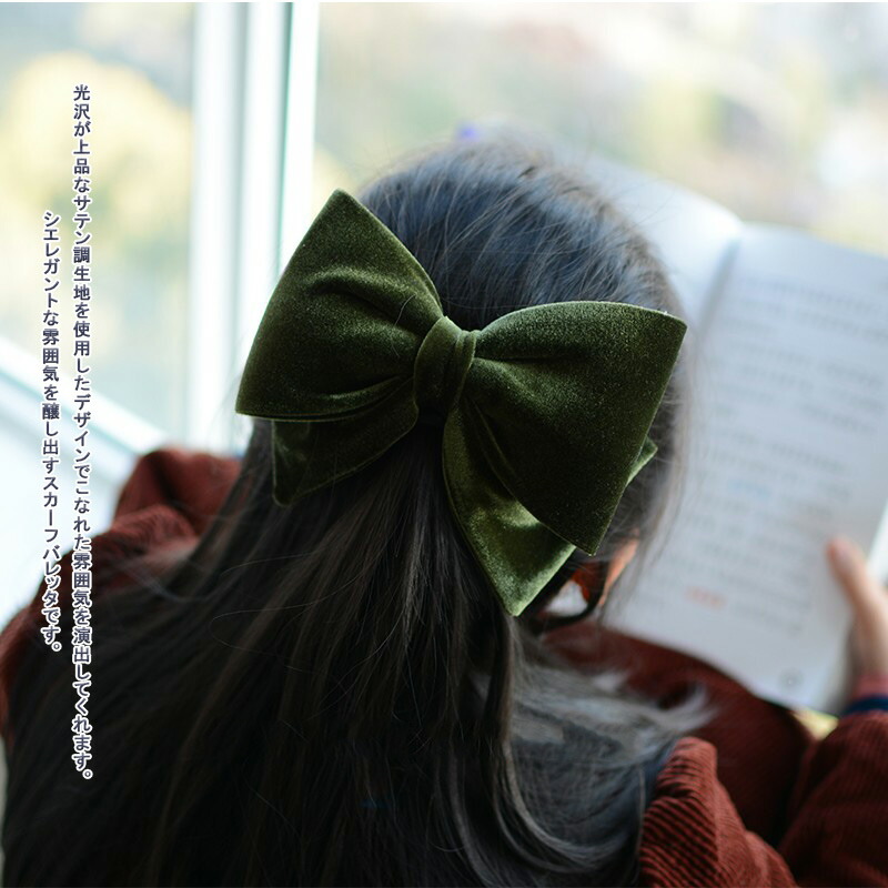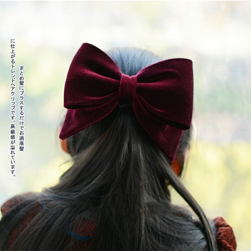バレッタ リボン ベロア ベルベット ヘアアクセ ヘアピン ボリューム ヘアアレンジ ヘアアクセサリー シンプル 無地 まとめ髪 蝶結び 大人っぽい 女性 婦人用 キッズ エレガント 髪飾り おしゃれ