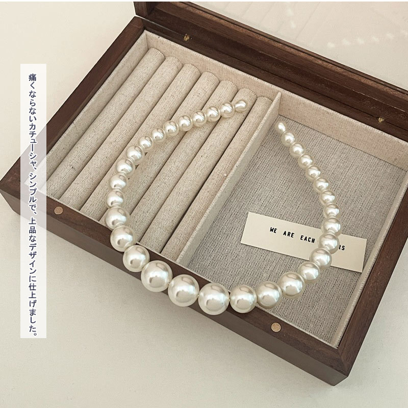本製品のカチューシャは、シンプルなデザインとなっているため、どんなコーデにも合わせやすくなっております。高級感のある上品な印象を与えてくれます。幅が太いカチューシャは、髪の毛の量が多い方や、ハーフ