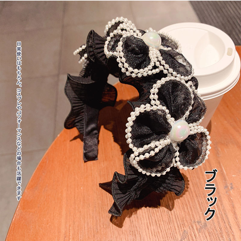 幅広 カチューシャ 光沢 蓮の葉 エレ
