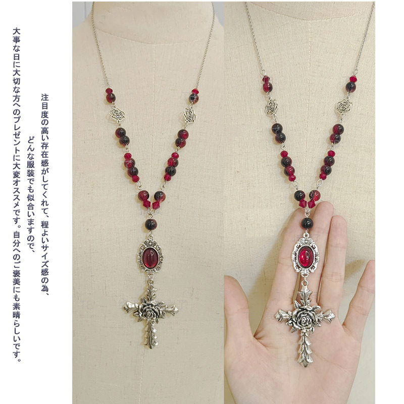 薔薇クロス型不思議ネックレス バラが中
