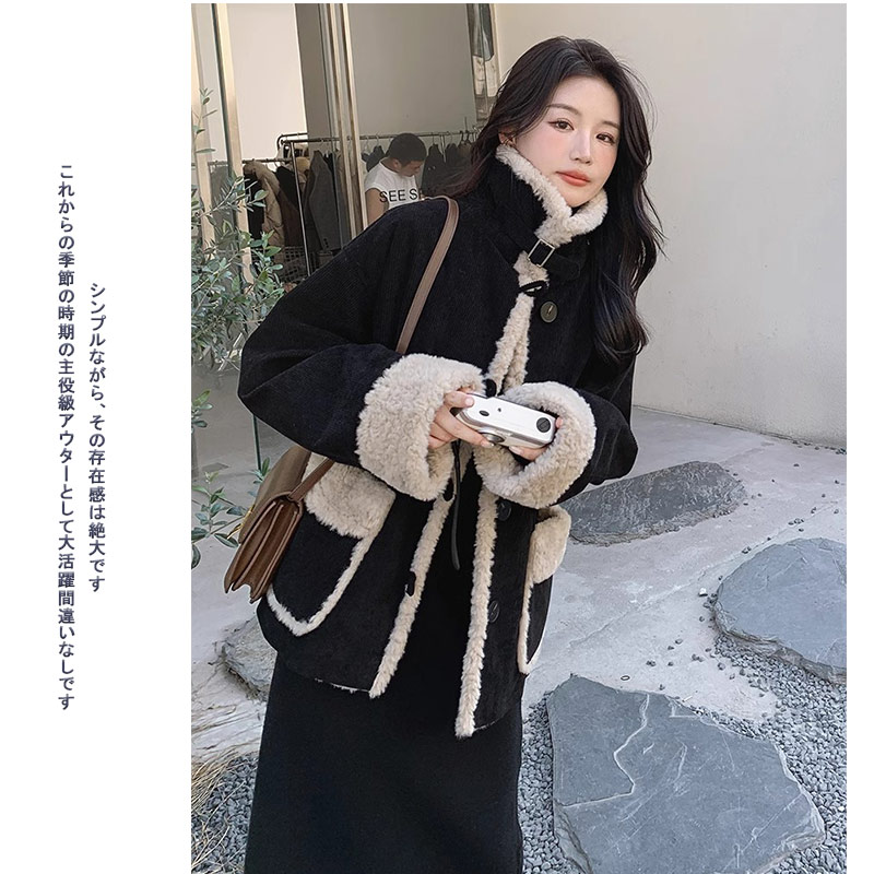 ボアコート ファーコート レディース ショート丈 毛皮コート 防寒 上品 もこもこ 立ち襟 ショートコート ジャケット 切替 秋冬 アウター 防風 ボリューム ふわふわ 通勤 おしゃれ お呼ばれ デー