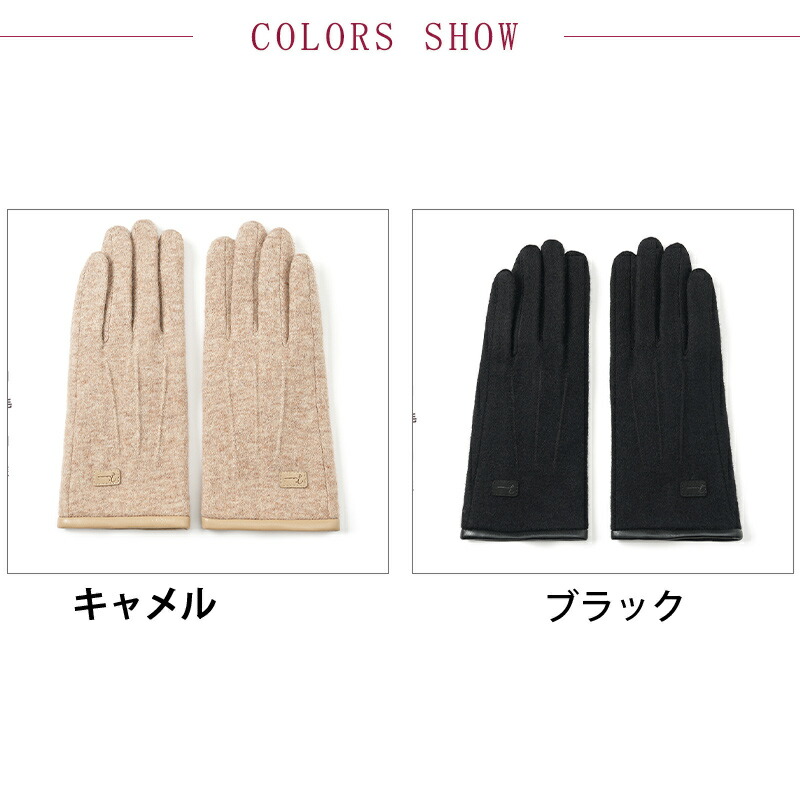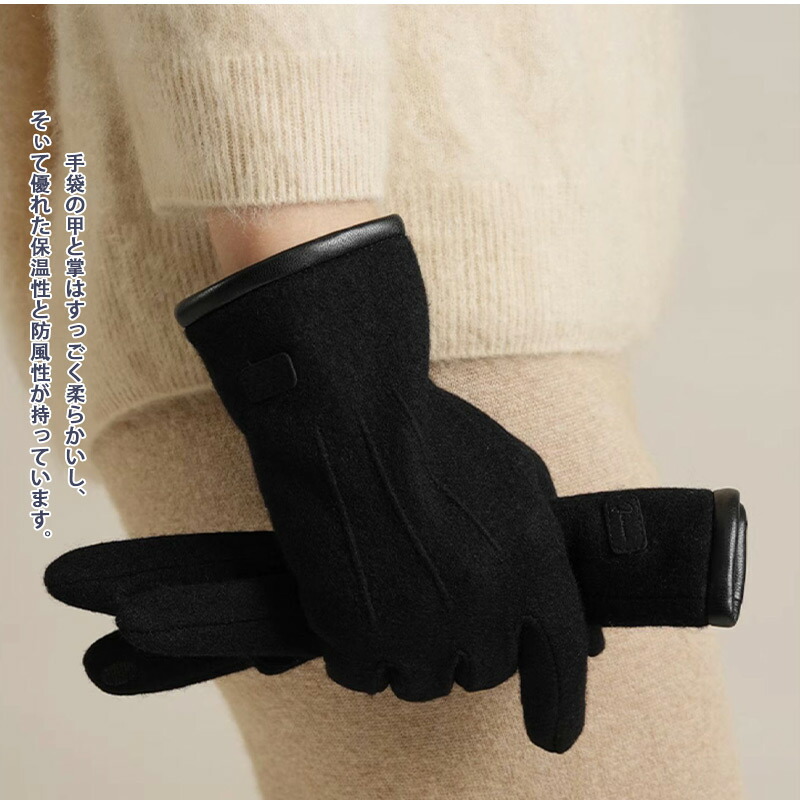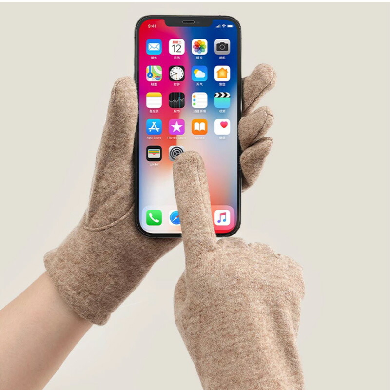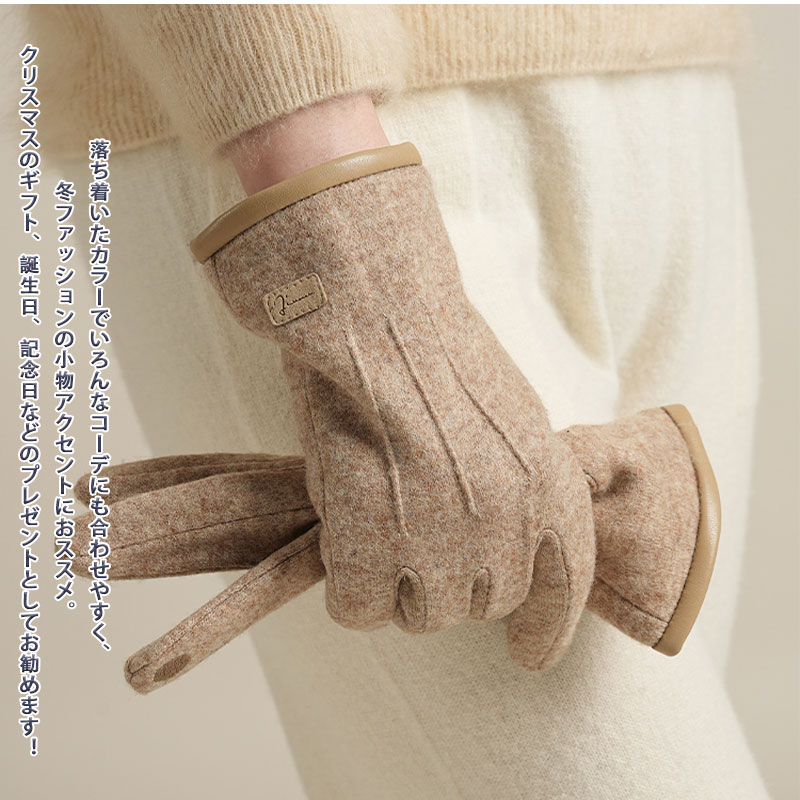 ニット手袋 レディース ウール 裏起毛