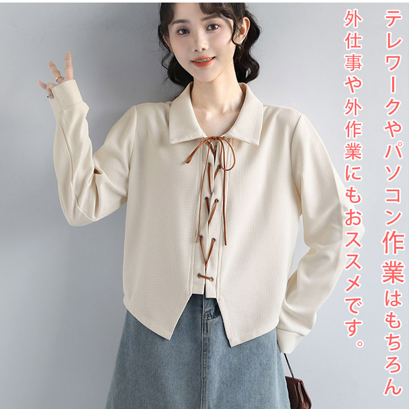 シアースリーブ ドッキングシャツ ボウタイシャツブラウス