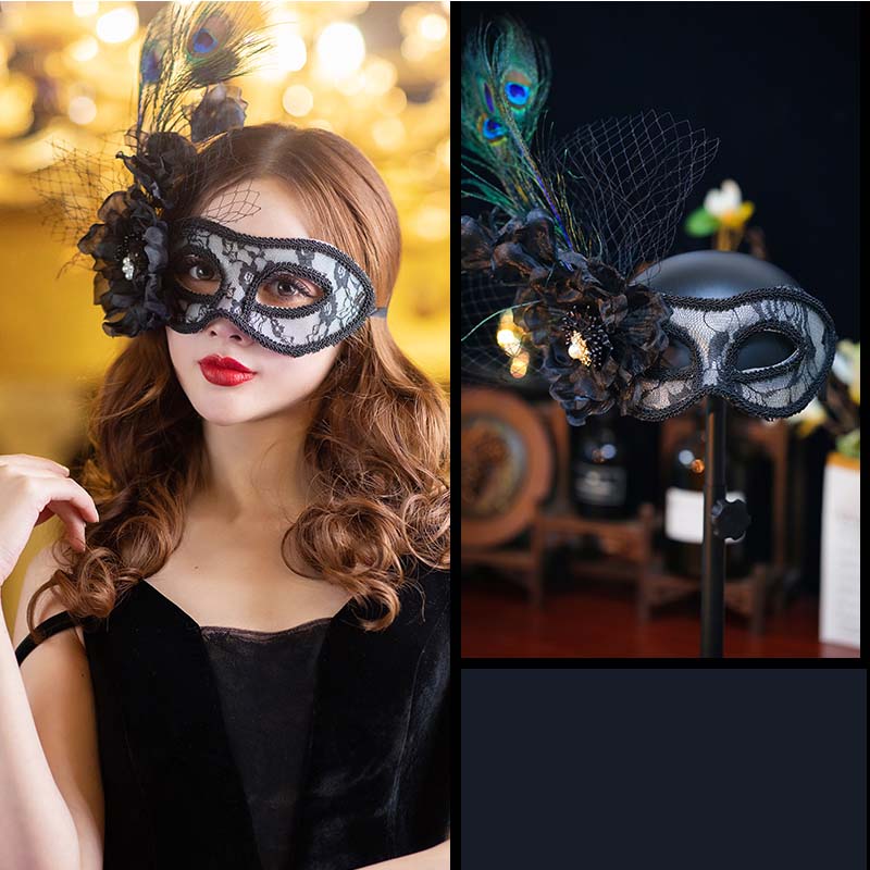 マスク 花 羽 飾り レース お面 ア