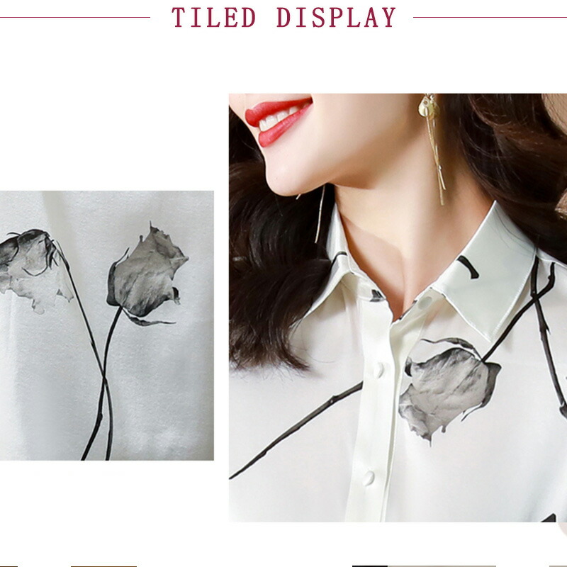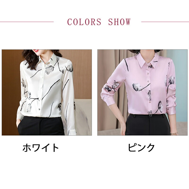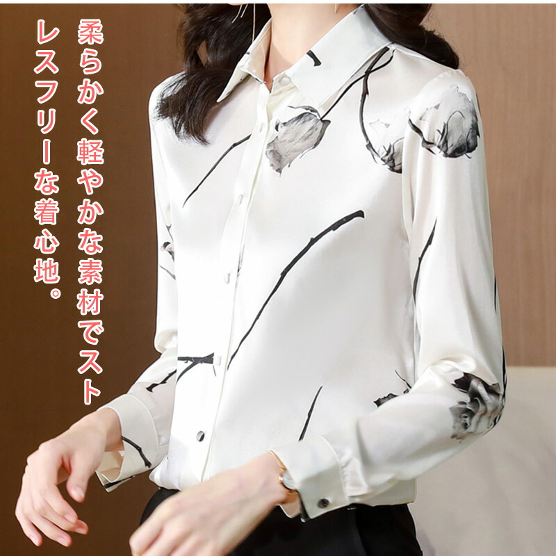 シャツ 花柄 長袖 レディース シフォ