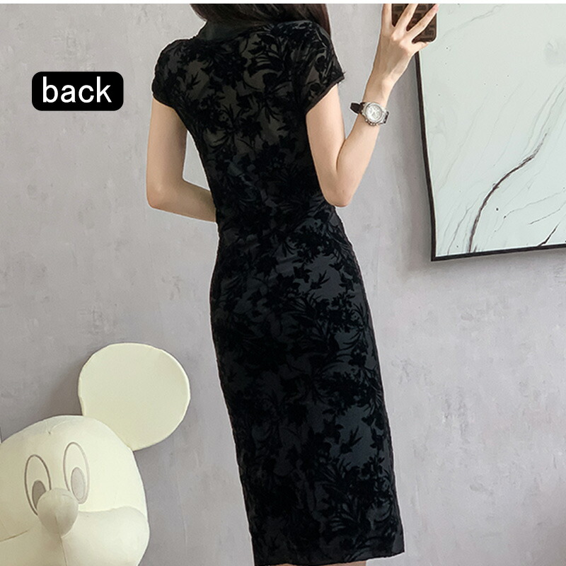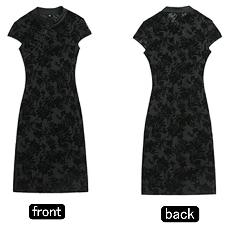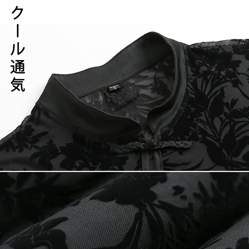 夏 ワンピース ブラック 中華服 チャ