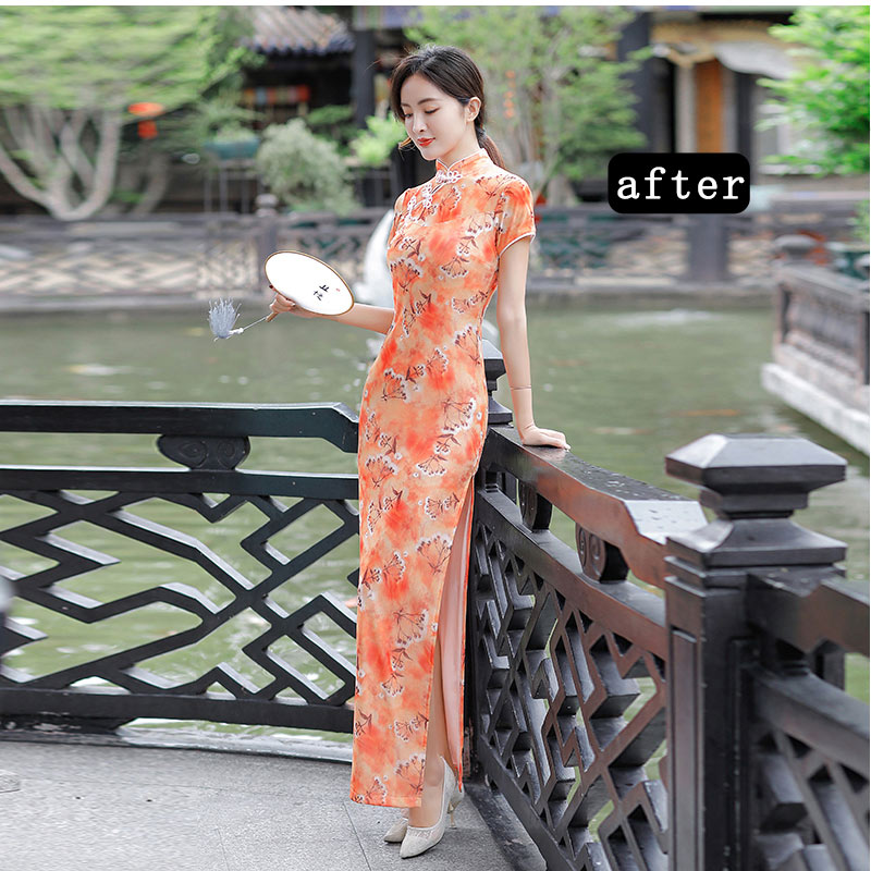 チャイナ服 半袖水墨中華服 レトロ中華