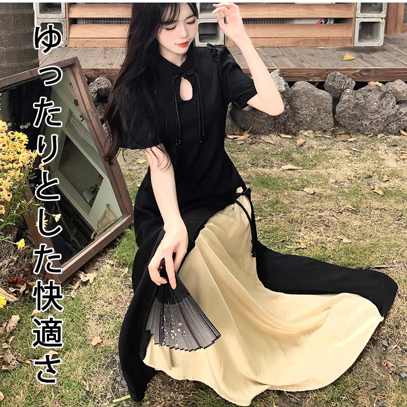 半袖 チャイナドレス マキシ 中華風