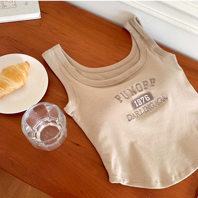 タンクトップレディースTシャツノースリーブUネックロゴプリント