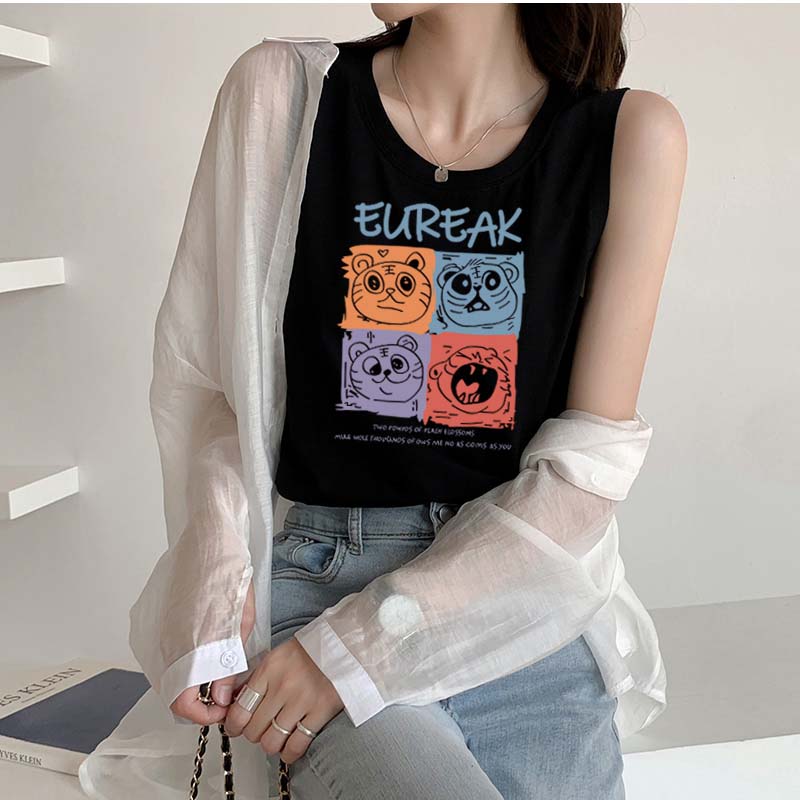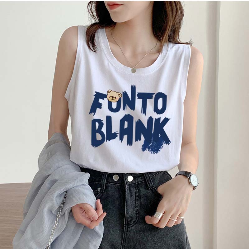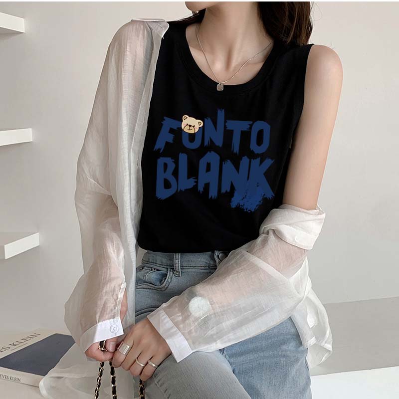 タンクトップレディースTシャツノースリーブUネックロゴプリント