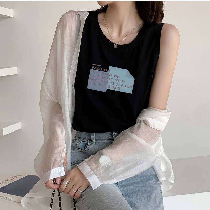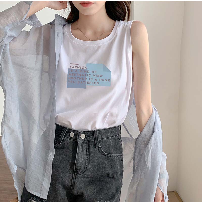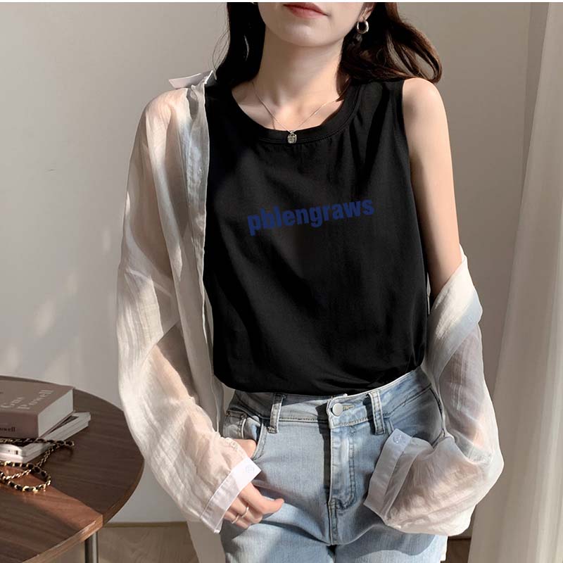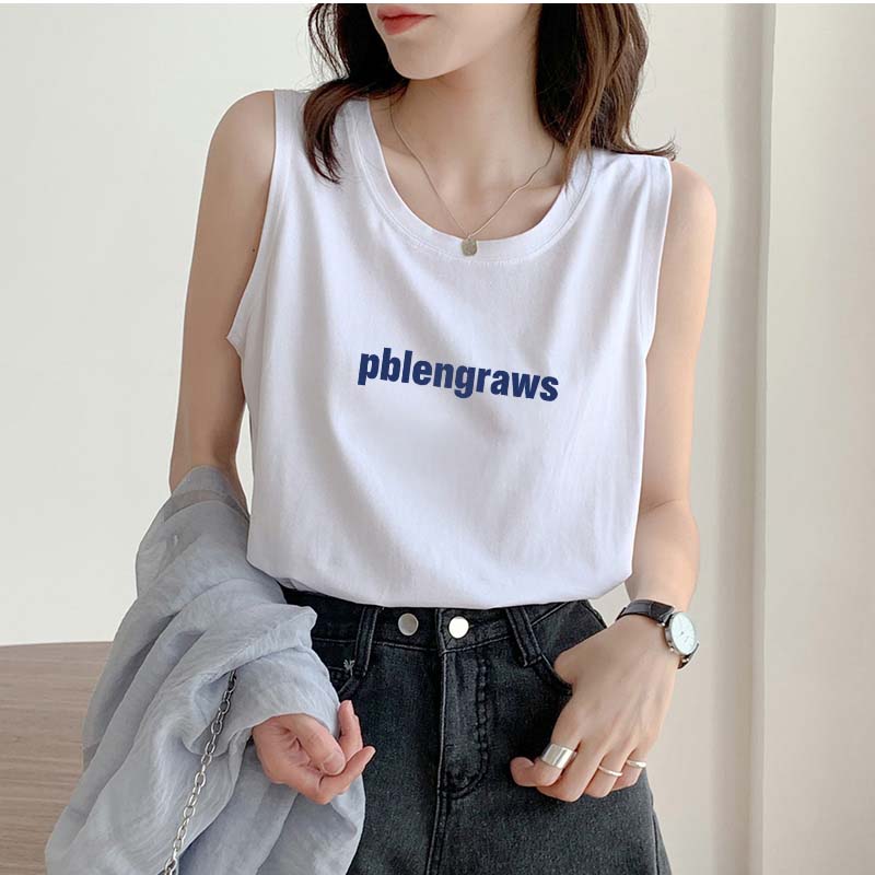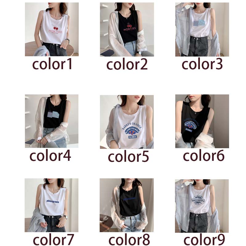 タンクトップレディースTシャツノースリーブUネックロゴプリント